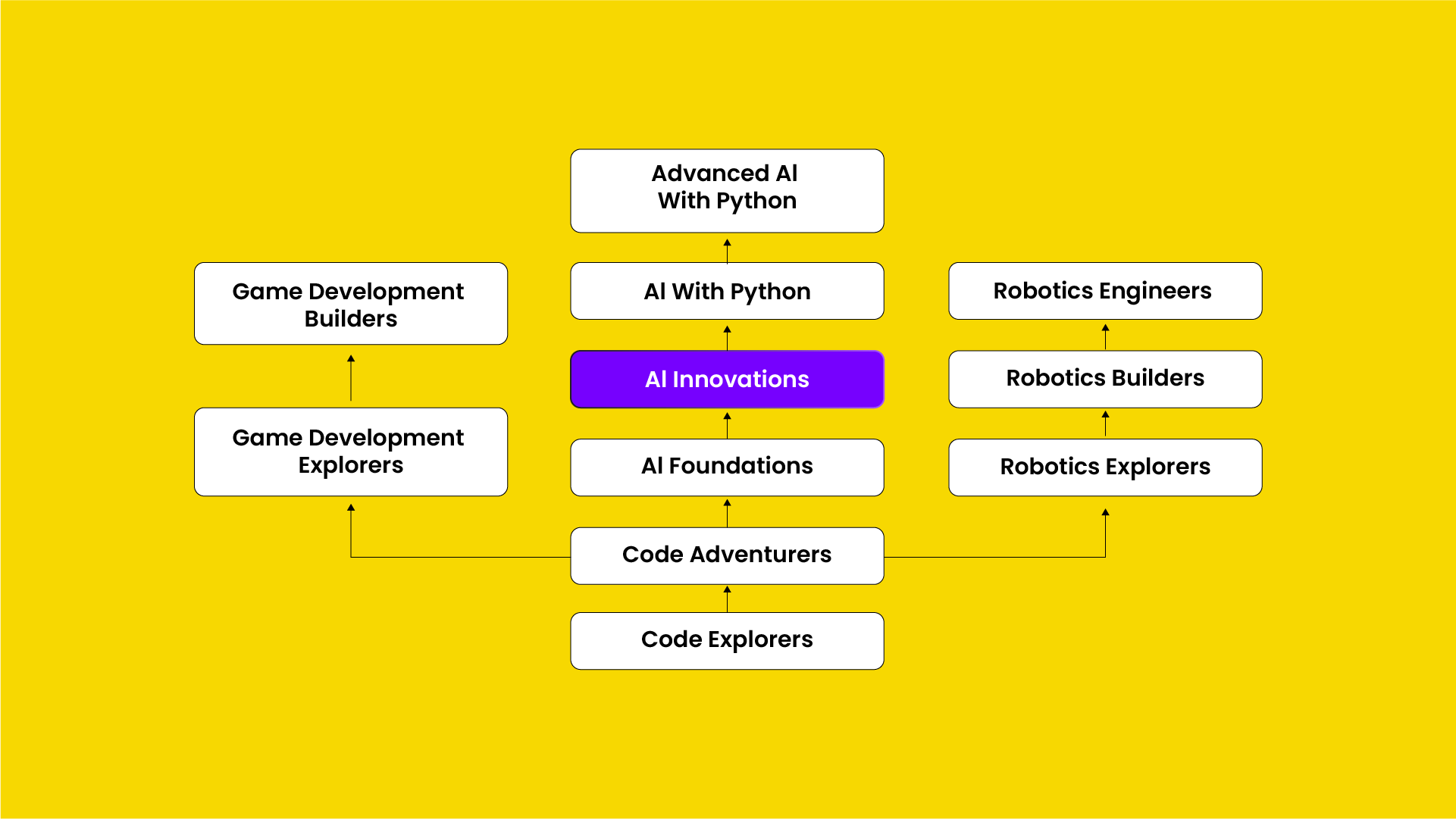 AI Innovations takes students beyond introductions and into deeper, more hands-on machine learning. Learners collect and organize data, train models, test results, and refine performance through iteration. Projects focus on building interactive experiences that respond to real inputs, while helping students understand what makes an AI system work well (or poorly). Students also practice explaining how their model works and explore responsible design choices, including bias and privacy. As part of the course, students get an early taste of text-based coding, with light introductions that help prepare them for Python in future courses.