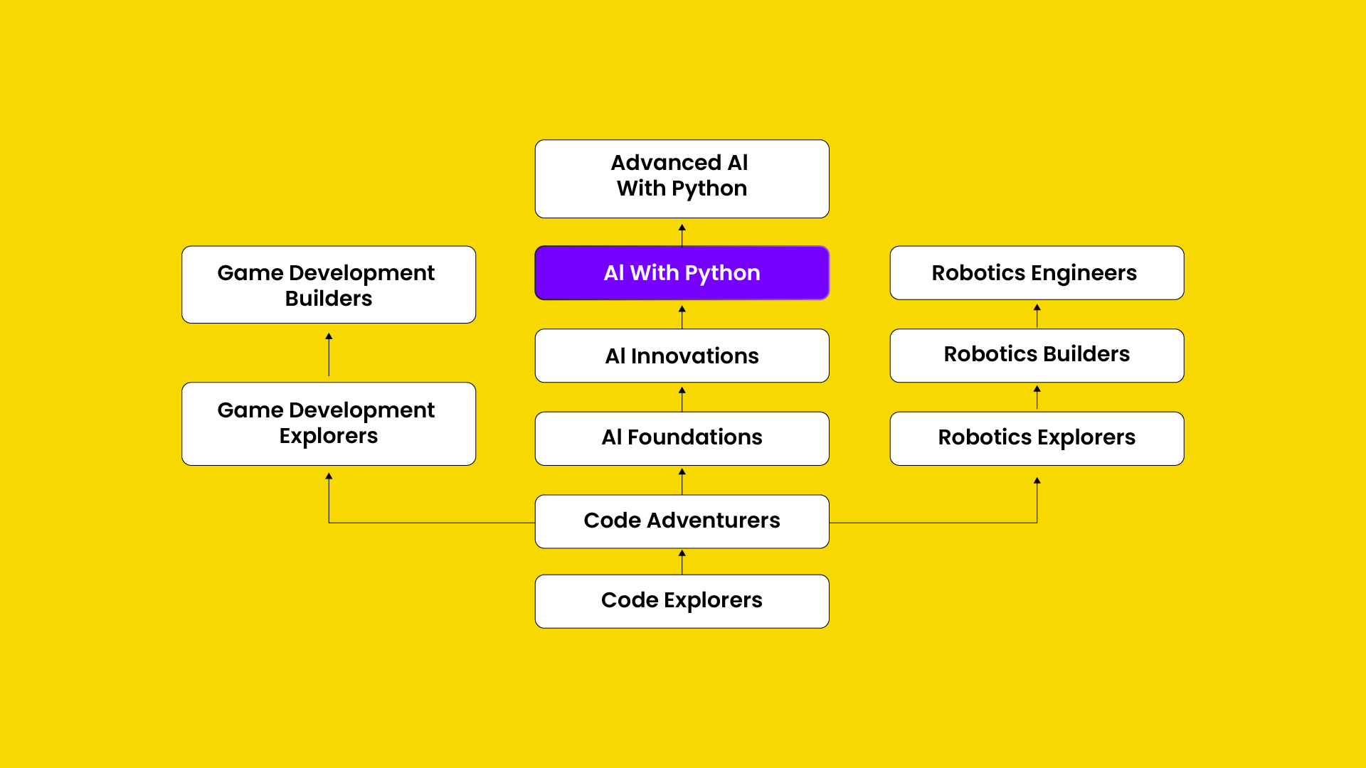 AI with Python supports the transition from block-based coding to text-based programming. Students learn Python fundamentals and apply them to beginner-friendly data and AI activities, building confidence with real coding workflows. Learners practice reading code, writing programs step-by-step, and debugging errors, skills that set them up for more advanced AI and software development.