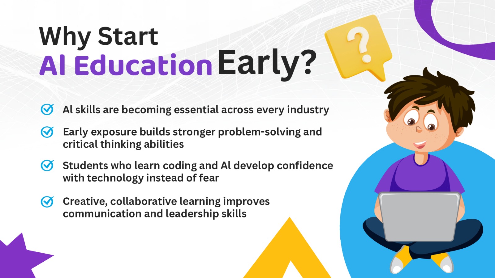 Our structured curriculum introduces students to coding and artificial intelligence step-by-step from beginner fundamentals to advanced project development.